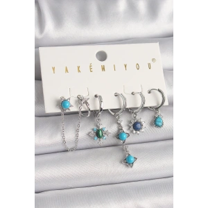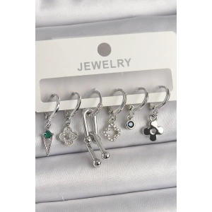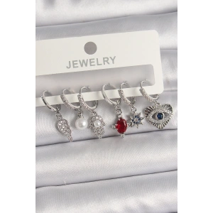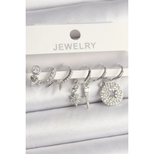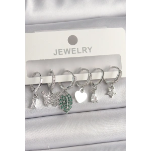 Pirinç Gümüş Renk Zirkon Taşlı Çoklu Figür Kadın Küpe Seti