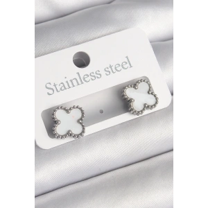 316L Çelik Gümüş Renk Beyaz Yonca Model Kadın Küpe