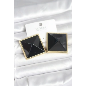 Pirinç Gold Renk Siyah Piramit Model Kadın Küpe