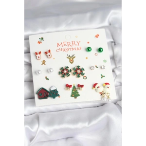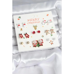 Yılbaşı Temalı Karışık Model 8 Çift Yılbaşı Temalı Kadın Küpe Seti