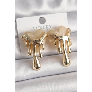 Pirinç Gold Renk Krem Sedefli Akan Kalp Model Kadın Küpe