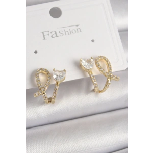 Pirinç Gold Renk Düğüm Model Zirkon Taşlı Kalp Detay Kadın Küpe