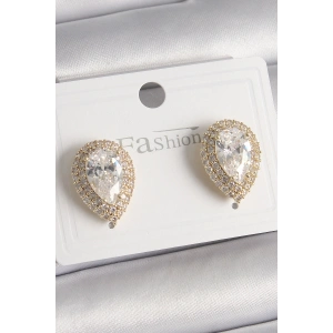Pirinç Gold Renk Zirkon Taşlı Damla Model Kadın Küpe