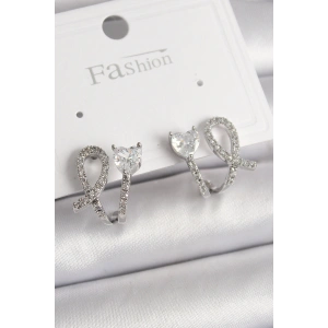Pirinç Gümüş Renk Düğüm Model Zirkon Taşlı Kalp Detay Kadın Küpe