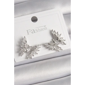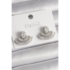 Pirinç Gümüş Renk Zirkon Taşlı Yelpaze Model Kadın Küpe