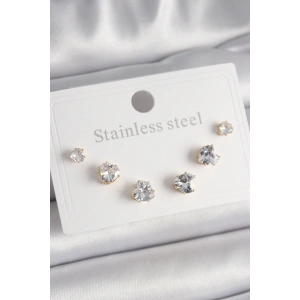316L Çelik Gold Renk Zirkon Taşlı Yıldız Model Kadın Küpe Seti