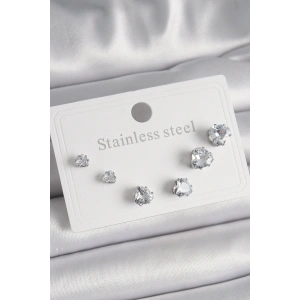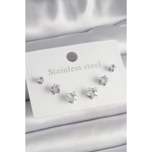 316L Çelik Gümüş Renk Zirkon Taşlı Yıldız Model Kadın Küpe Seti