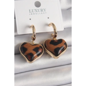 Pirinç Gold Renk 3D Kalp Leopar Desen Model Kadın Küpe