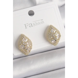 Pirinç Gold Renk Zirkon Taş İşlemeli Damla Model Kadın Küpe