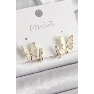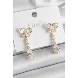 Pirinç Gold Renk Zirkon Taşlı Kelebek Model Sallantı Damla Zirkon Taş Kadın Küpe
