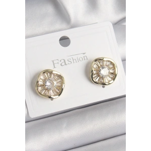Pirinç Gold Renk Zirkon Taşlı Yonca Model Kadın Küpe