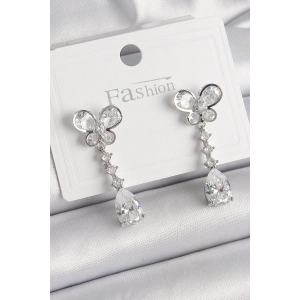 Pirinç Gümüş Renk Kelebek Model Sallantı Damla Zirkon Taşlı Kadın Küpe