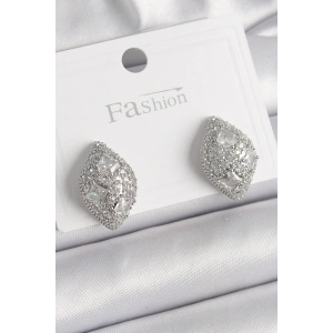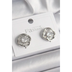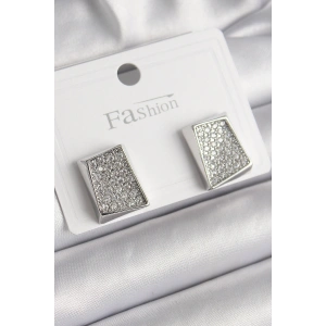 Pirinç Gümüş Renk Zirkon Taşlı Plaka Model Kadın Küpe