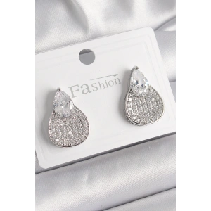 Pirinç Gümüş Renk Zirkon Taş İşlemeli Damla Model Kadın Küpe