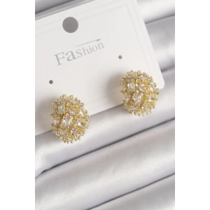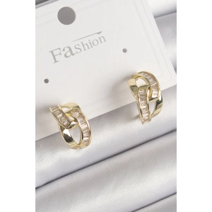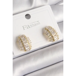 Pirinç Gold Renk Zirkon Taşlı Kadın Küpe