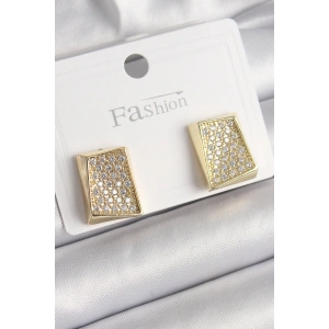 Pirinç Gold Renk Zirkon Taşlı Plaka Model Kadın Küpe