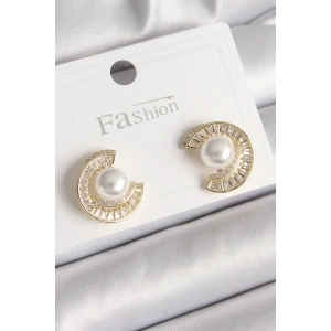 Pirinç Gold Renk Zirkon Taşlı Salyangoz Model İnci Detay Kadın Küpe