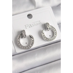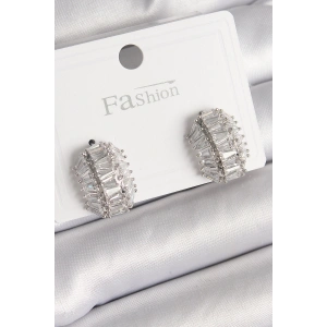 Pirinç Gümüş Renk Zirkon Taşlı Çivi Halka Model Kadın Küpe