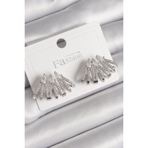 Pirinç Gümüş Renk Zirkon Taşlı Zincir Model Kadın Küpe