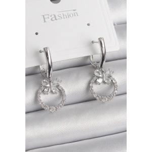 Pirinç Gümüş Renk Zirkon Taşlı Çiçek Figür Sallantı Detay Kadın Küpe