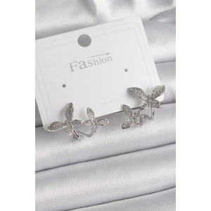 Pirinç Gümüş Renk Zirkon Taşlı Kelebek Model Kadın Küpe