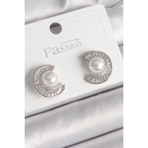 Pirinç Gümüş Renk Zirkon Taşlı Salyangoz Model İnci Detay Kadın Küpe