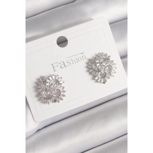 Pirinç Gümüş Renk Zirkon Taşlı Yonca Model Kadın Küpe
