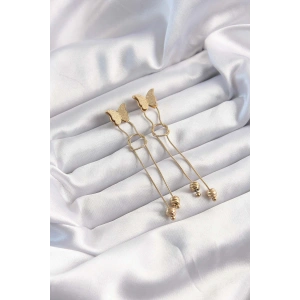 316L Çelik Altın Renk Sallantılı Düğüm Model Kelebek Küpe
