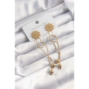 316L Çelik Altın Renk Sallantılı Düğüm Model Papatya Küpe