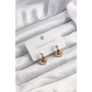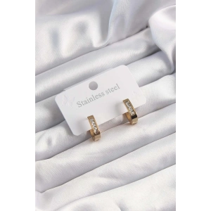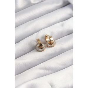 316L Çelik Gold Renk Zirkon Taşlı Halka Model Kadın Küpe