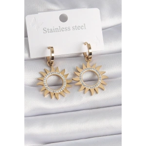 316L Çelik Gold Renk Zirkon Taşlı Güneş Model Kadın Küpe