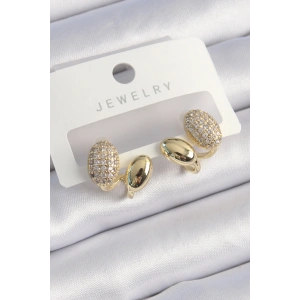 Pirinç Gold Renk Zirkon Taşlı Kadın Küpe