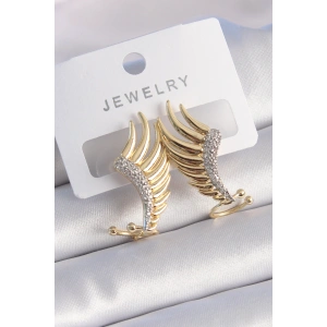 Pirinç Gold Renk Zirkon Taşlı Kanat Model Kadın Küpe
