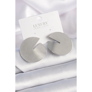 Pirinç Gümüş Renk Daire Plaka Model Kadın Küpe