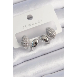 Pirinç Gümüş Renk Zirkon Taşlı Kadın Küpe