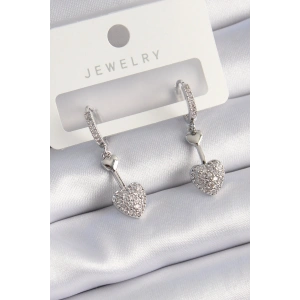 Pirinç Gümüş Renk Zirkon Taşlı Sallantı Kalp Model Kadın Küpe