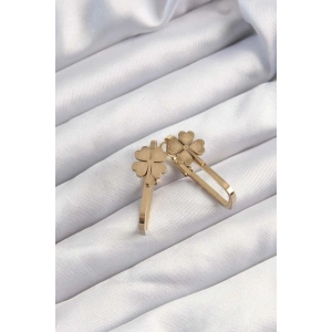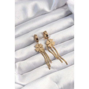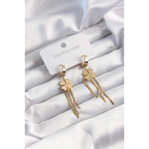316L Çelik Altın Renk İtalyan Zincirli Yonca Model Halka Küpe