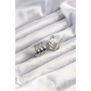 316L Çelik Gümüş Renk 3lü Görünüm Bombe Model Yarım Halka Küpe