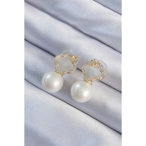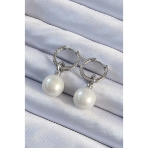 Pirinç Gümüş Renk Zirkon Taş Kaplama İnci Tasarımlı Kadın Küpe