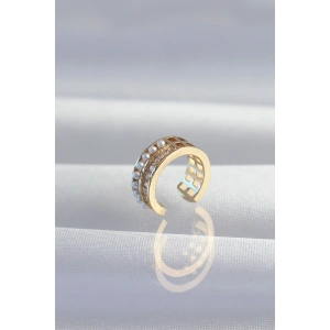 Pirinç Gold Renk İncili Baget Taşlı Earcuff Küpe
