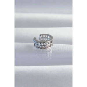 Pirinç Gümüş Renk İncili Baget Taşlı Earcuff Küpe