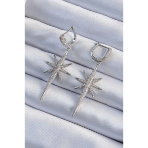 Pirinç Gümüş Renk Zirkon Taş Kaplama Kutup Yıldızı Tasarımlı Kadın Küpe