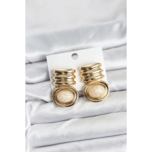 Pirinç Gold Krem Renk Vintage Kadın Küpe