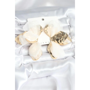 Pirinç Gold Renk Beyaz Tüllü Lotus Kadın Küpe