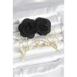 Pirinç Gold Renk Siyah Gül Model Kadın Küpe