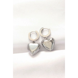 316L Çelik Gümüş Renk Bombeli Kalp Tasarımlı Küpe