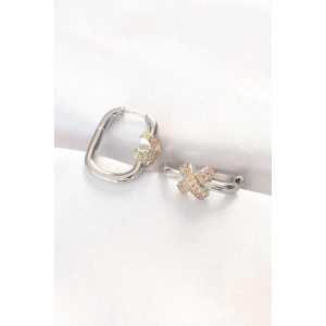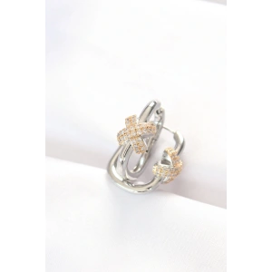 CCB Beyaz Gold Çift Renk Küpe