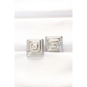 Pirinç Gümüş Renk Kare Form Küpe