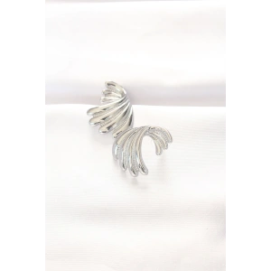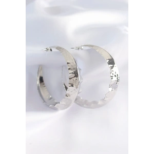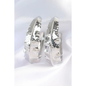 Pirinç Gümüş Renk Yaprak Desenli Halka Küpe