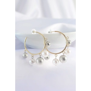 Pirinç Gümüş Renk Topçuk Model Gold Renk Halka Küpe